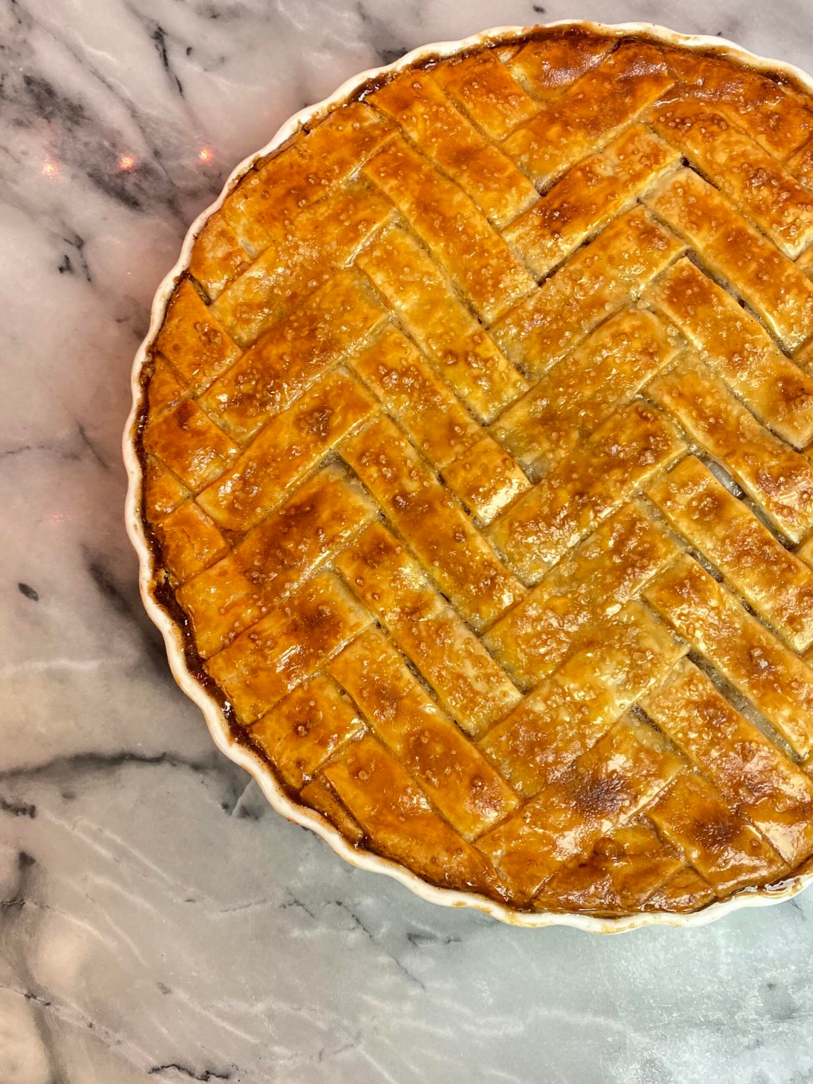 - Remove the pie from the oven and let it cool on a wire rack for at least 1 hour before slicing and serving.