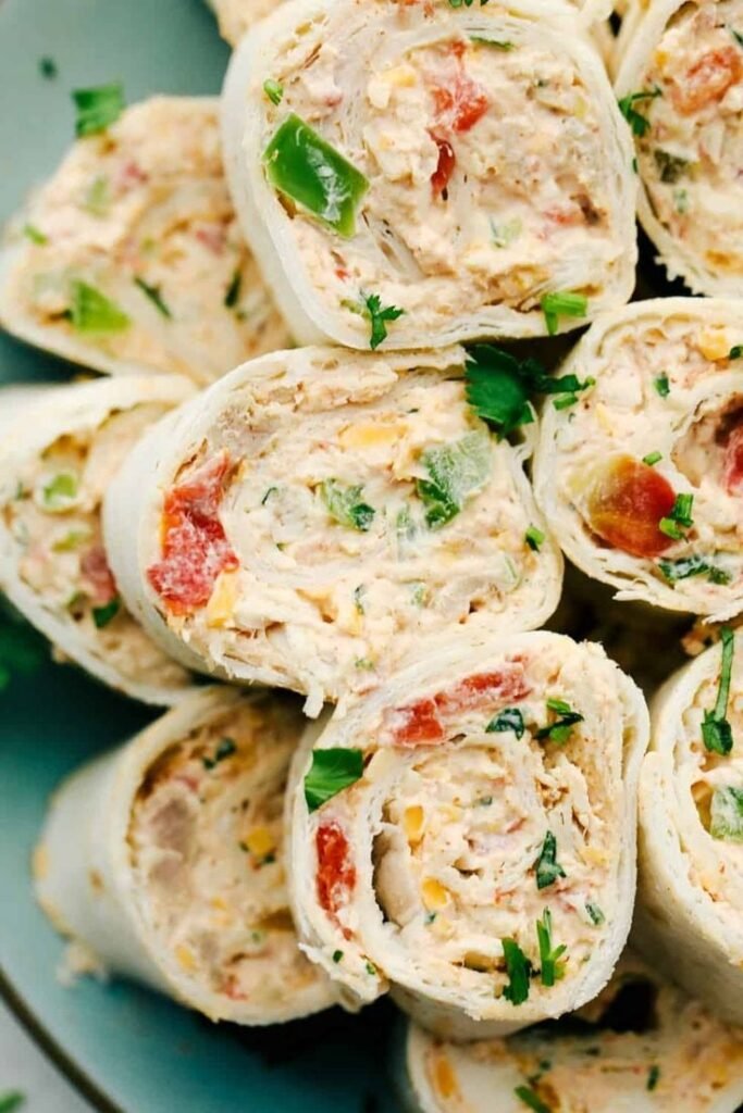 Ingredients: 12 ounce cream cheese softened 1/2 cup sour cream 1 10 ounce can rotel drained (tomatoes with green chilis) 1/2 green bell pepper finely diced 2 cups chicken cooked …