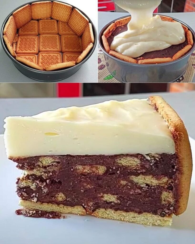Ingredients: Chocolate cream: 360 g cookies Eggs 2 Cocoa powder 3 tablespoons Cornstarch 2,5 tablespoons Vanilla sugar 10 g Sugar 50g Milk 500 ml Butter 50g White cream : Cornstarch …