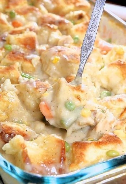 Chicken Pot Pie Casserole with Biscuits *Ingredients: °10 oz pre-cooked chicken breast, cubed °1 onion, chopped °3 cups chicken broth °1/3 cup all-purpose flour °1 tsp salt °1/2 tsp …