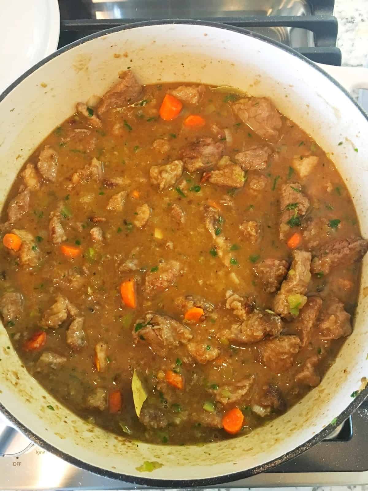 - Add the beef and brown on all sides, about 5 minutes per side.