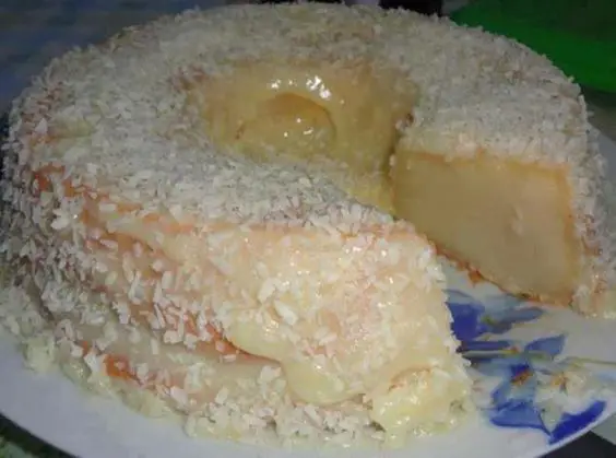 Put the coconut milk, sugar and grated coconut in a saucepan, stirring occasionally. Bring to a boil, let it cool a bit, then pour over hot cake. The icing mixture will look like condensed milk when done.