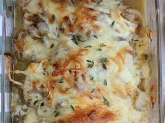 Ingredients: 4 onions, peeled and sliced 4 tablespoons butter 4 cloves garlic, minced 1/2 teaspoon pepper 1 teaspoon thyme 2/3 cup low sodium beef broth 2 tablespoons balsamic vinegar 4 …