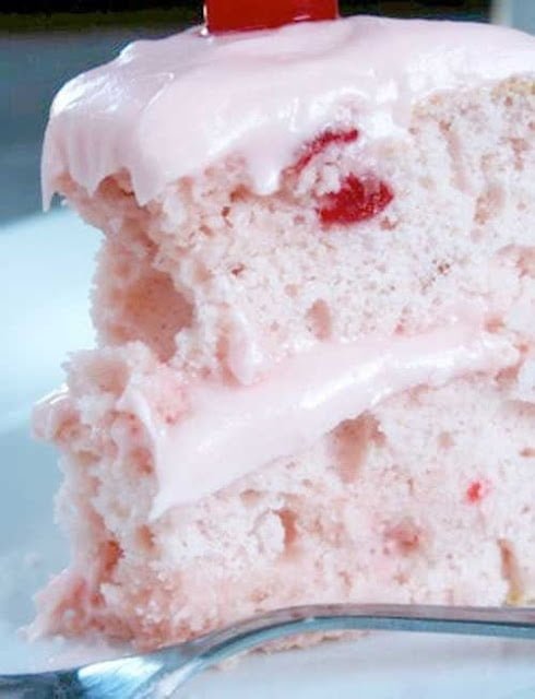 Measure the milk, almond extract, and cherry juice into one liquid measuring cup together. Starting and ending with the dry ingredients, add the wet and dry to the cream mixture. Beat well after each addition. Fold the cherry.