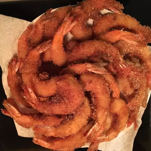 - Remove the Coconut Shrimp from the skillet using a slotted spoon and place them on a paper towel-lined plate to drain excess oil.
