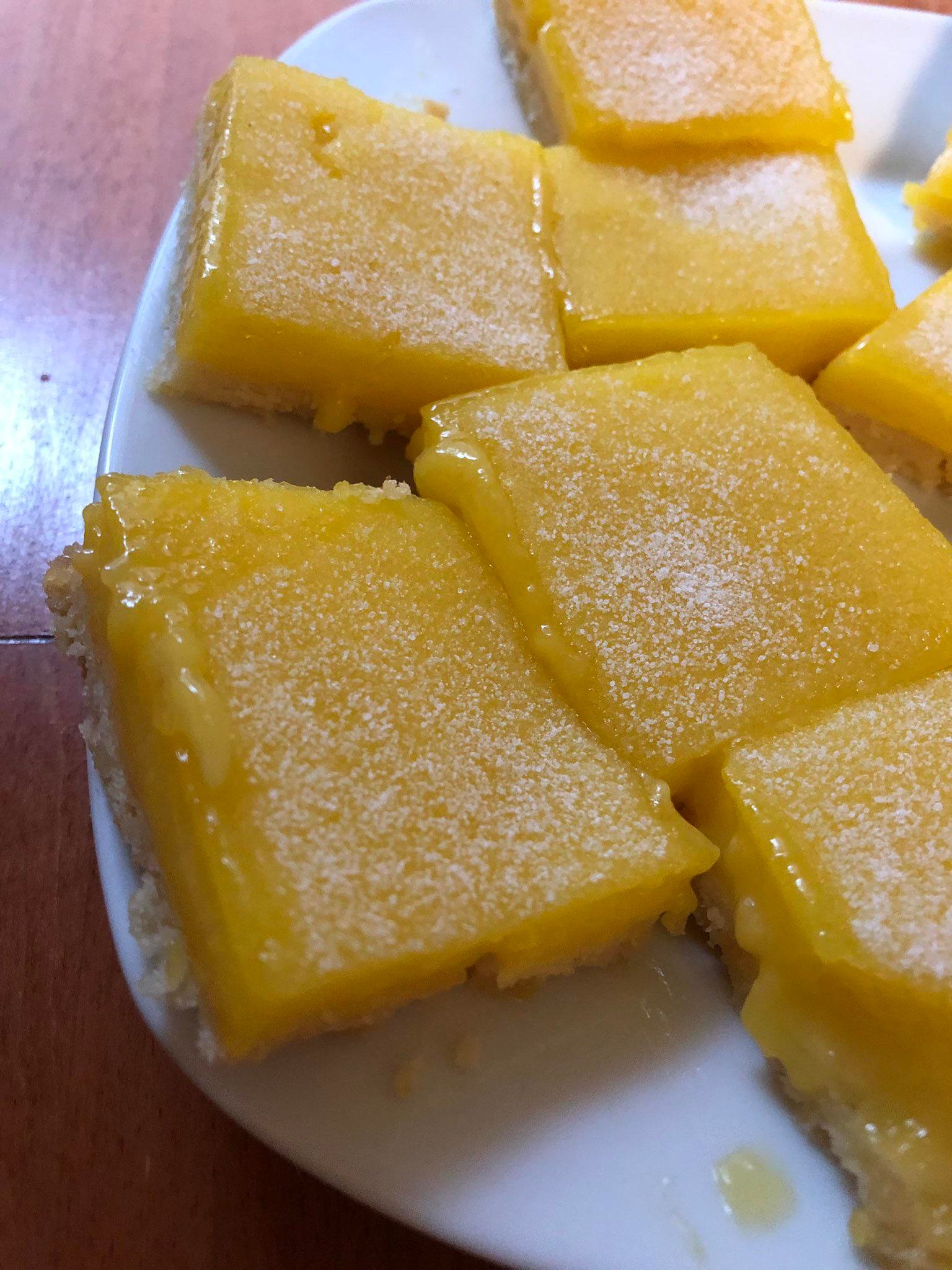- Remove from the oven and let the lemon squares cool completely in the baking dish.
