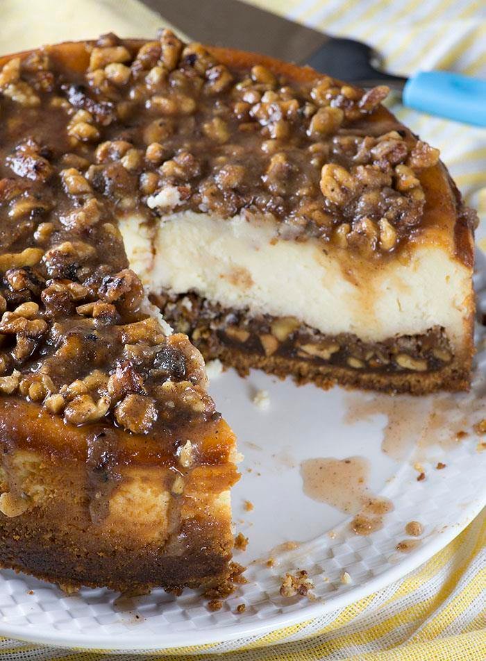 Pecan Pie Cheesecake is a rich and indulgent dessert that combines two classic desserts into one delicious treat. The graham cracker crust provides a crunchy base for the creamy and tangy cheesecake layer, while the pecan pie layer adds a sweet and nutty flavor. This dessert can be customized by using different nuts such as walnuts or almonds. Enjoy this decadent Pecan Pie Cheesecake!