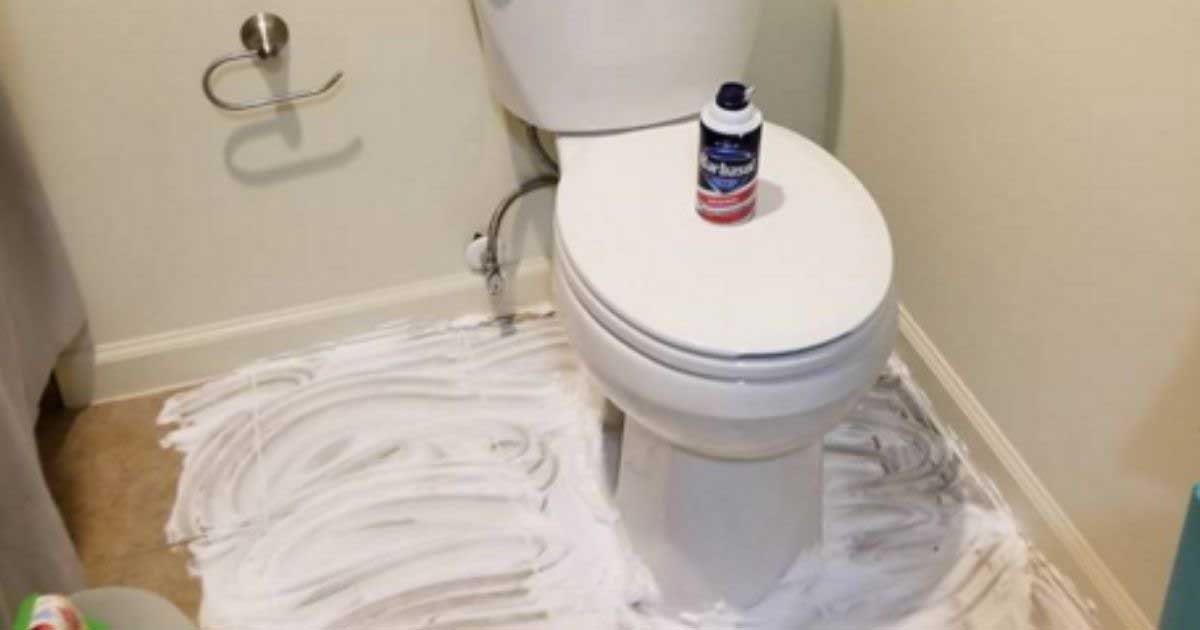 Priscilla explained that classic cheapo shaving cream will remove the smell of urine from your bathroom floor and the trim around the toilet. She added that she always cleans the area first with a bleach-based cleaner to disinfect, but as a mom of three boys who are in potty training, the stale smell lingers. That’s why every once in a while, they follow with a shaving cream slather to remove that stale urine smell.